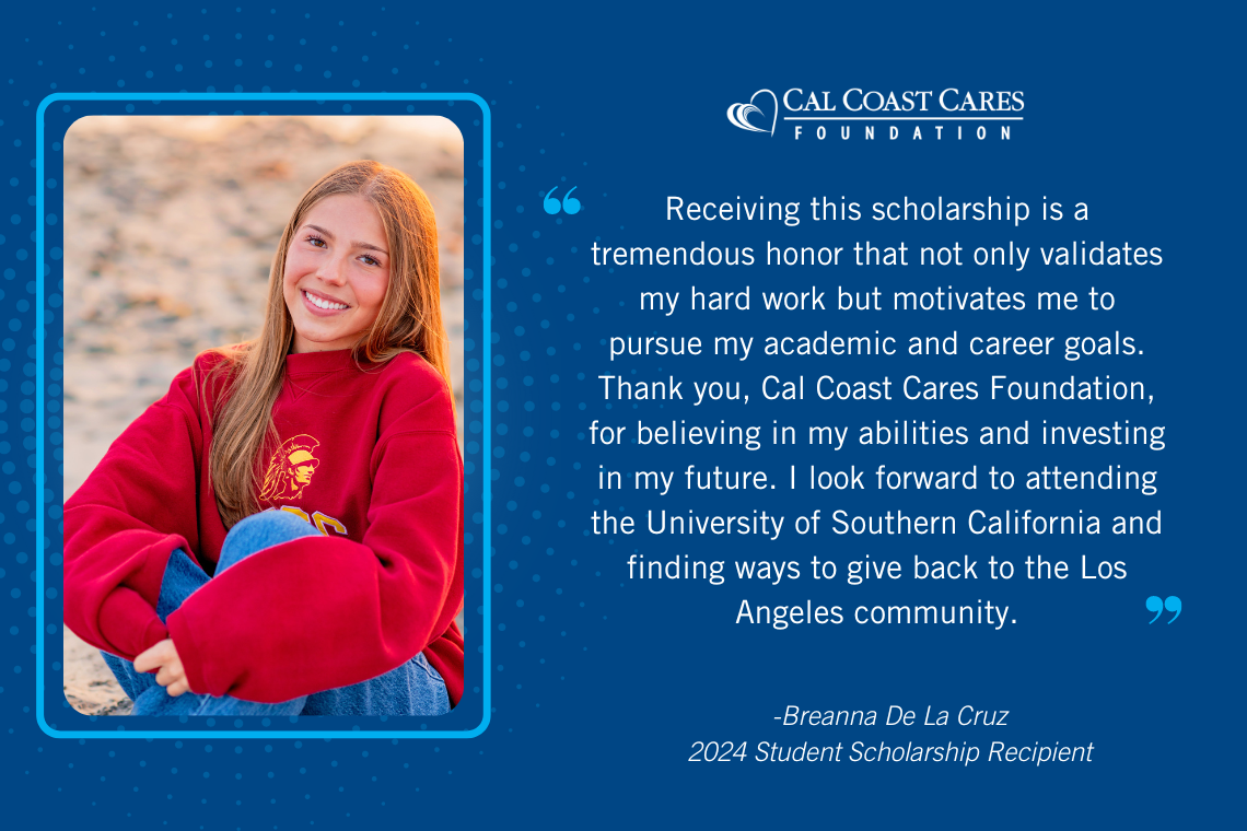 The Cal Coast Cares Foundation is pleased to announce that it has awarded more than $200,000 in scholarships to support college-bound high school seniors, foster students and current college students in San Diego or Riverside counties! A list of the 2025 Student Scholarship Awardees is below (note that foster youth names have been omitted for privacy).